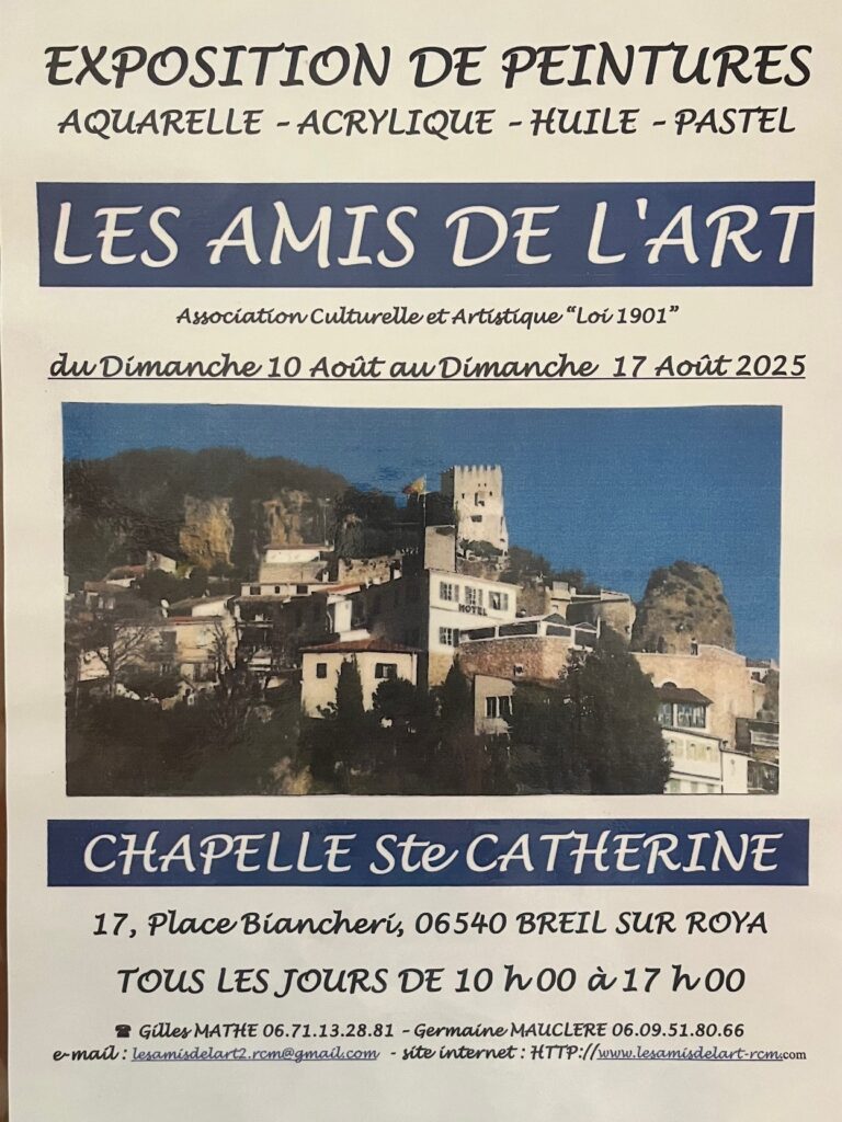 L’association les Amis de l’Art expose à Breil sur Roya du 10 au 17 août 2025