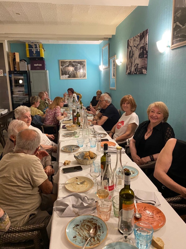Le lundi 26 mai 2025, les membres de notre Association se sont retrouvés au restaurant Le Fellini à Roquebrune Cap Martin pour un moment convivial et chaleureux. Une soirée pleine de rires d’échanges et de bonne humeur.